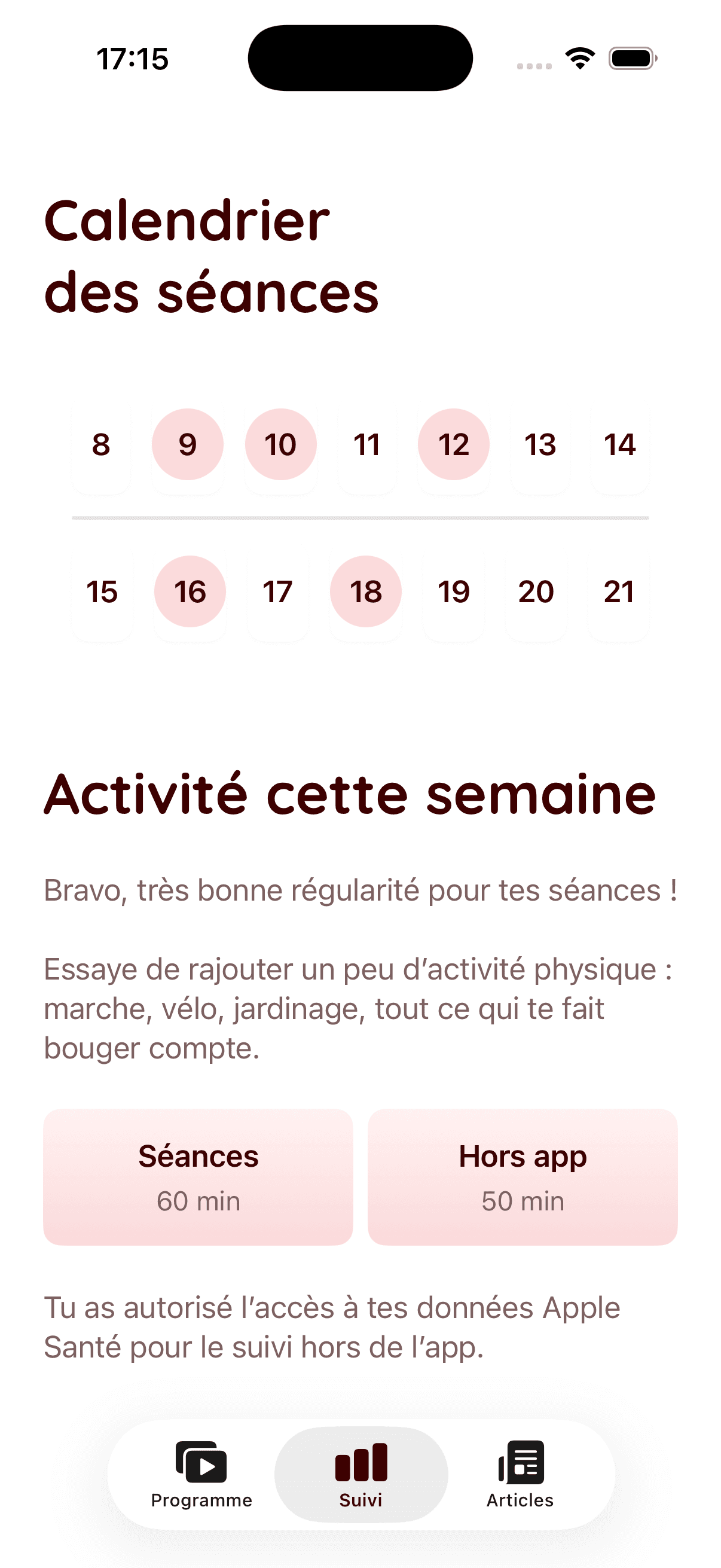 Commence où tu en es : nous allons t’aider à te remettre en forme. Tu pourras suivre tes progrès.
